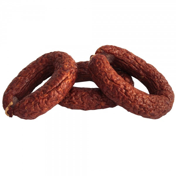 Kiełbasa wieprzowa średnio rozdrobniona, wędzona, parzona, suszona.