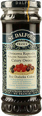 St. Dalfour. Cztery Owoce. Produkt owocowy z malin, truskawek, jeżyn i wiśni słodzony zagęszczonymi sokami owocowymi.