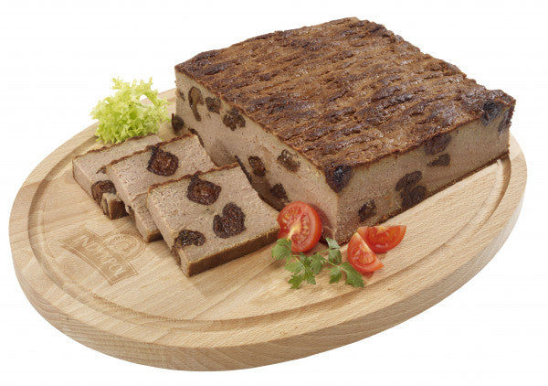 Doskonały pasztet (100% drobiowy) pieczony według tradycyjnej receptury. Pasztet z dodatkiem suszonych śliwek, co tworzy wyjątkową kombinację smaku i aromatu oraz atrakcyjny wygląd na przekroju. Odpowiednia konsystencja pozwala pokroić pasztet na cienkie plastry. Doskonały na świąteczny stół w formie przystawki, ale także jako wzbogacenie codziennego jadłospisu. Praktyczne opakowanie (aluminiowa foremka) ułatwia przechowywanie oraz zapobiega kruszeniu się pasztetu.